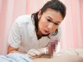 美女によるブラジリアンワックス施術中に勃起してしまい暴発射精してしまう僕