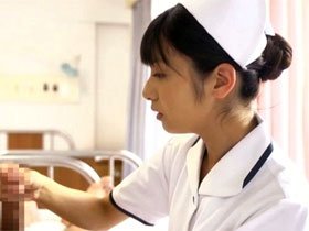 優しくち○ぽを手コキして射精に導く献身的な看護師さん。